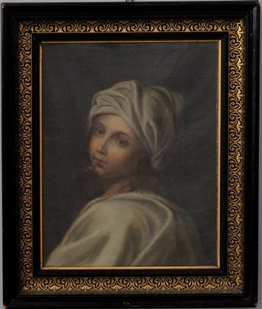 Ignoto, copia da Guido Reni "Beatrice Cenci" olio su tela (cm 46x45) Iscritto in basso a sinistra "B. Cenci / E Plo...k / ... / ...899". In cornice