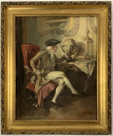 "Gentiluomo nello studio" 09, olio su cartone telato (cm 40x32) Firmato e datato in basso a destra. In cornice (difetti e mancanze)