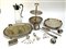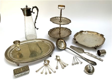 Cartone contenente numerosi oggetti per la tavola in metallo argentato (difetti