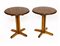 Coppia di tavolini tondi con profili ebanizzati. Gamba centrale squadrata terminante a quattro piedi (cm 61x67) (difetti)