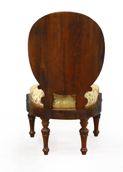 Sedia con schienale tondo lastronata, gambe tornite, scanalate ed intagliate, secolo XIX (difetti)