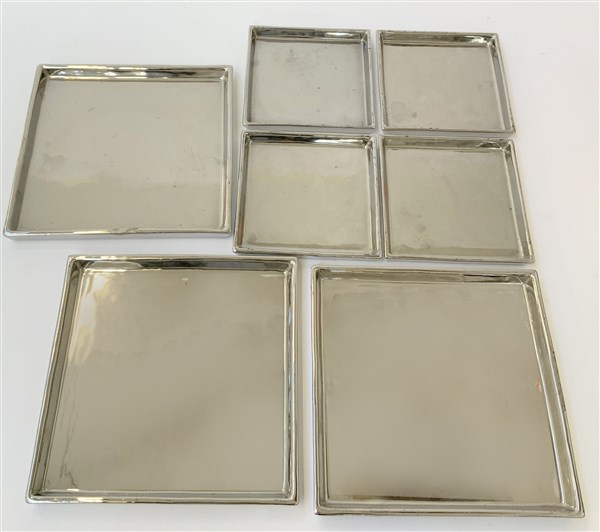 Lotto composto da sette vassoi quadrati in ceramica smaltata ad effetto cromato (cm 18x18 e 28x28) (difetti)