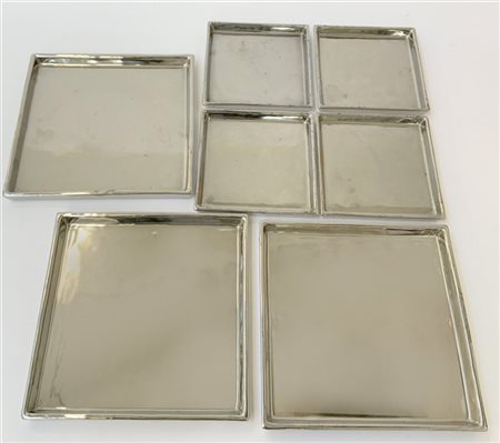 Lotto composto da sette vassoi quadrati in ceramica smaltata ad effetto cromato