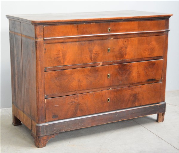 Cassettone a tre cassetti grandi più uno piccolo sottopiano. Secolo XIX (cm 130x99x64) (difetti)