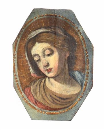 Ignoto "Madonna" olio su tavola ottagonale (cm 25x18) (difetti e restauri)