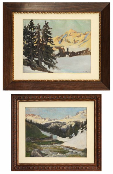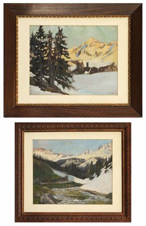 "Paesaggi montani" due dipinti ad olio su tela (cm 33x42; cm 35x46) In cornici