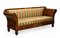 Divano lastronato in noce con schienale e fascia intarsiati a motivi vegetali,