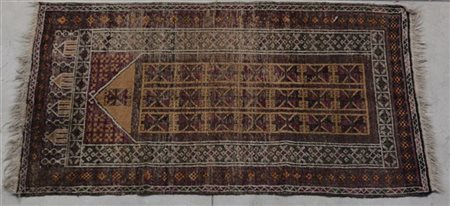 Tappeto preghiera Afghan, secolo XX. Mirab decorato con file di medaglioni su f