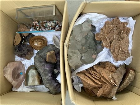 Lotto di due cartoni contenente numerosi minerali (difetti)