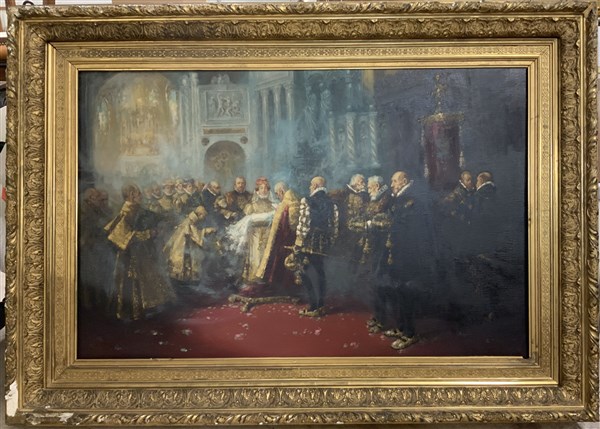 Ignoto "Battesimo regale" olio su tela (cm 70x110) In cornice (difetti e mancan