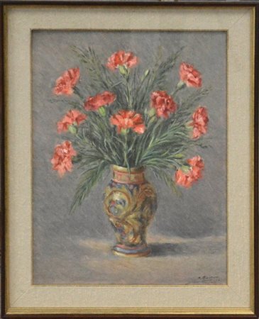 "Vaso con fiori" olio su tela (cm 66x50) Firmato in basso a destra. In cornice