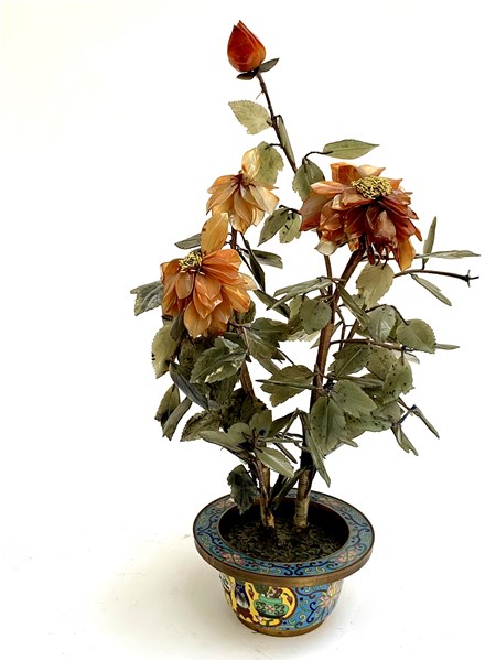 Pianta in pietre dure con vaso in metallo cloisonné Cina, sec. XX (h. cm 50) (d