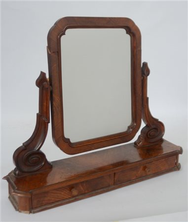 Psiche da tavolo con montanti sagomati e due cassettini alla base, secolo XIX (cm 65x77.5) (difetti)
