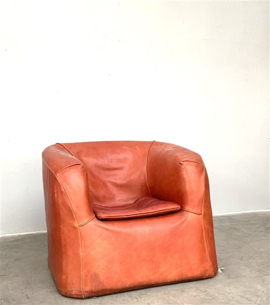 Poltroncina imbottita e rivestita in similpelle rossa. Italia, anni '70. (cm 84x67x70) (lievi difetti)