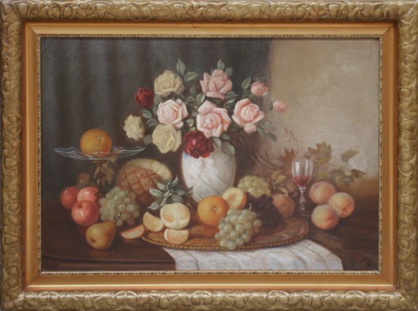K. Kalinovski "Fiori e frutta" olio su tela (cm 70x100) Firmato in basso a sinis