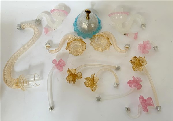 Cartone contenente alcune parti di lampadario di Murano (lievi difetti)