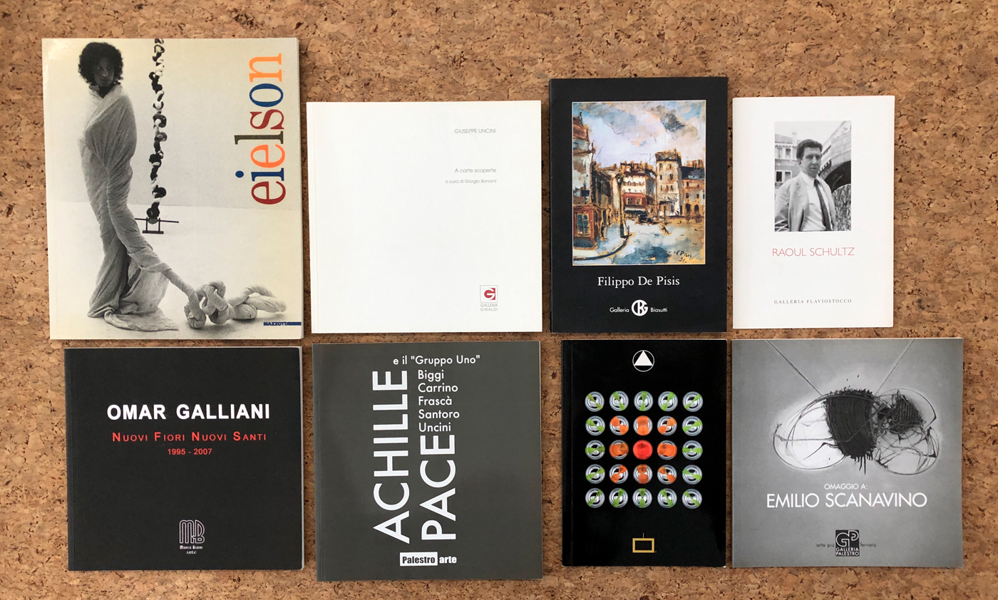 ARTE DEL DOPOGUERRA (EIELSON, UNCINI, GALLIANI, PACE, SCANAVINO, COSTALONGA, DE PISIS, SCHULTZ) - Lotto unico di 8 cataloghi