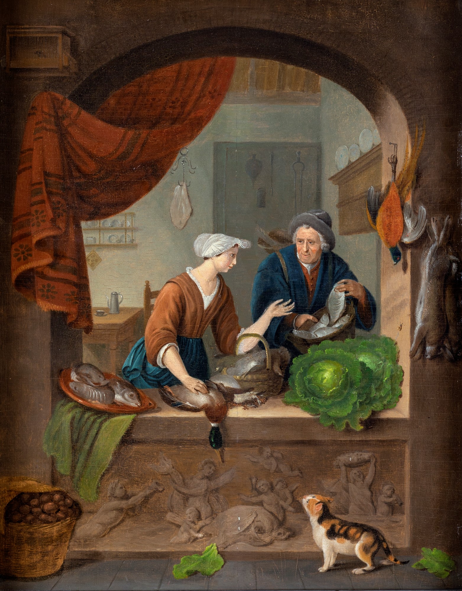 Pittore fiammingo del XIX Secolo - Interno di cucina - - cm 50x39