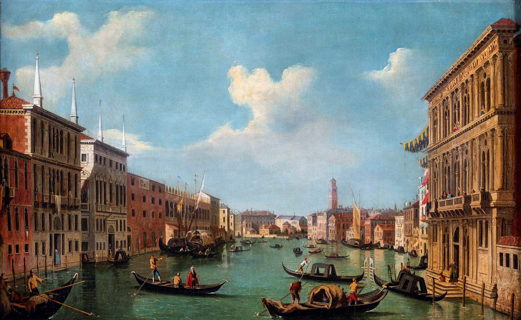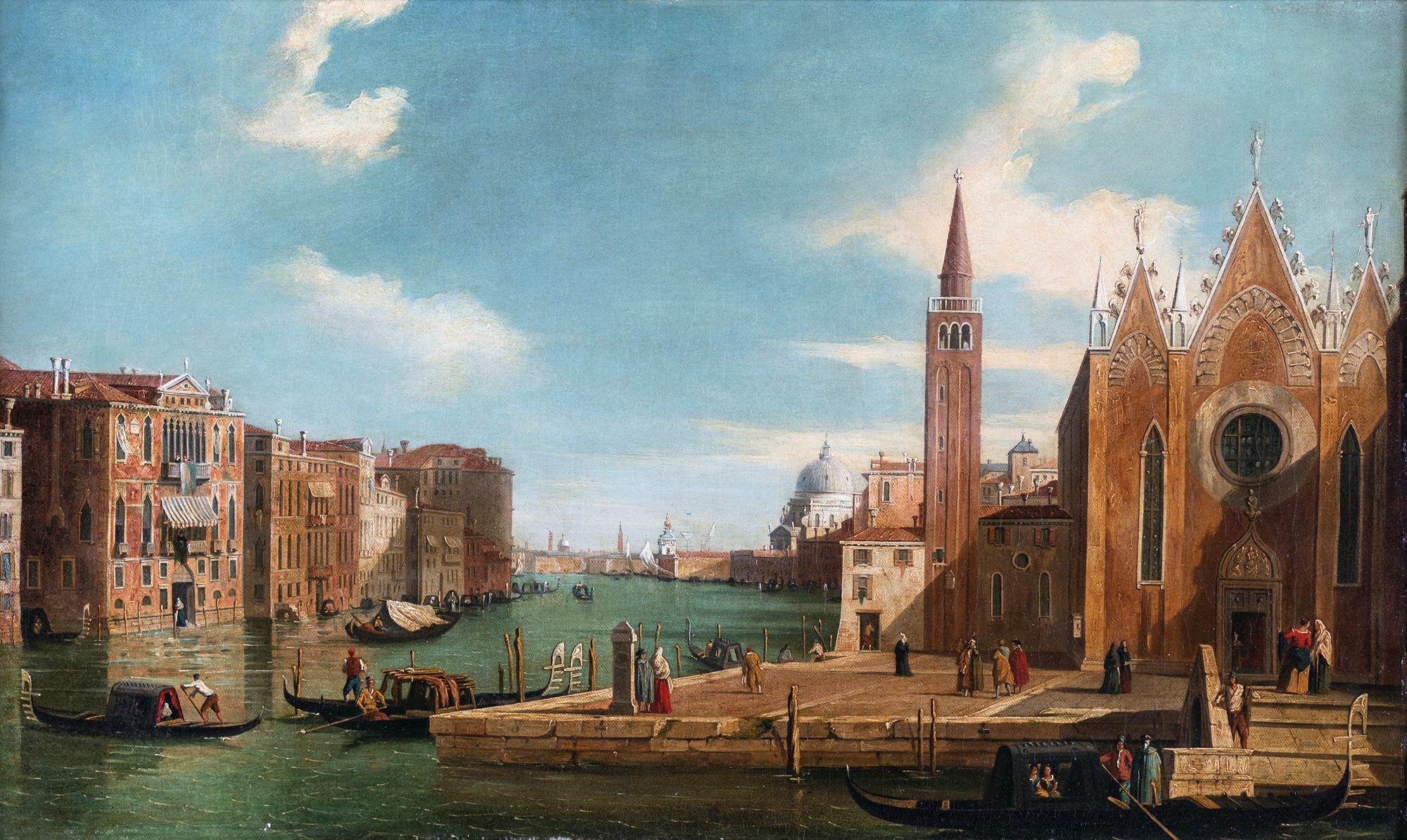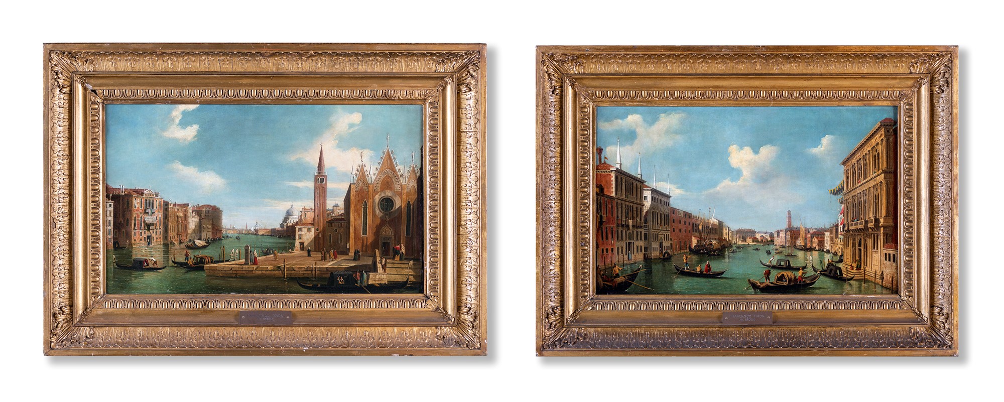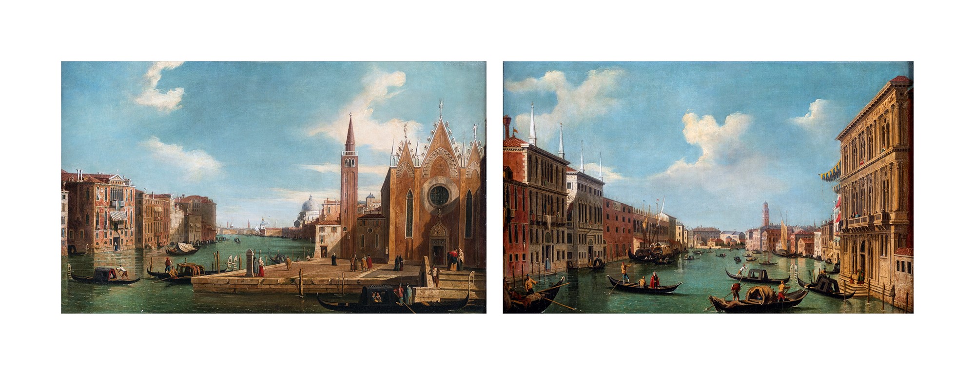 Pittore del XVIII secolo - a) Veduta di Venezia con il Canal Grande verso nord-ovest, da palazzo Vendramin-Calergi b) Veduta del Canal Grande da Santa Maria della Carità al Bacino di San Marco - Entro cornice. - cm 38x64