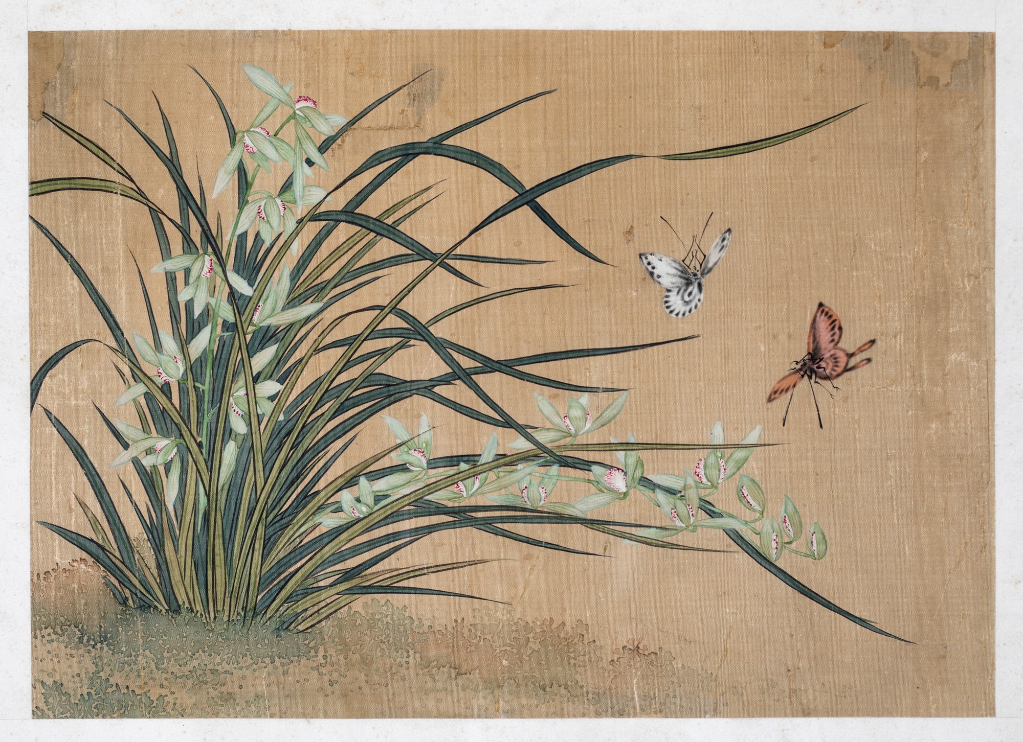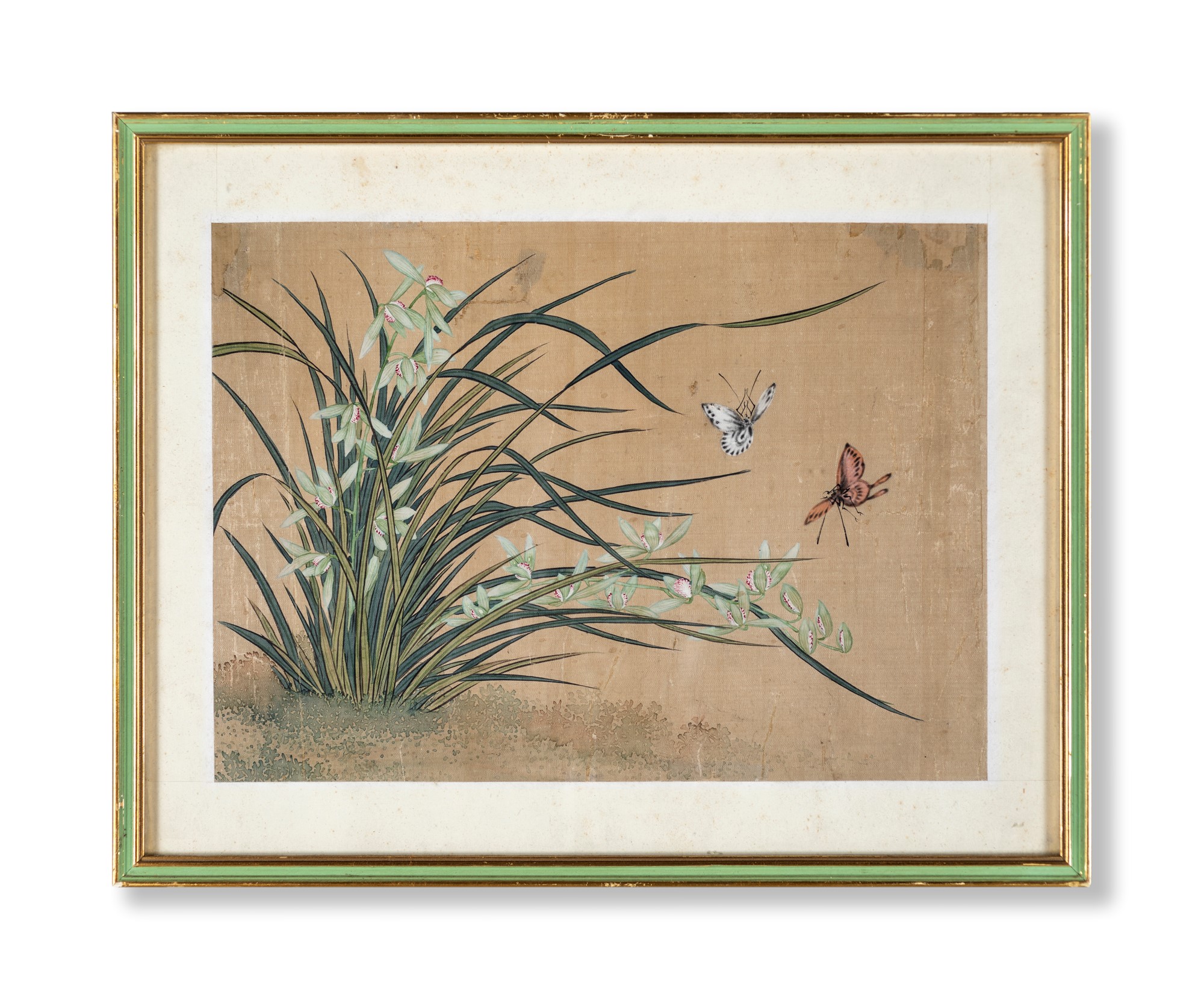 Ramo fiorito e insetti Cina, XIX secolo. inchiostro e acquerelli su seta cm 34x44 con la cornice