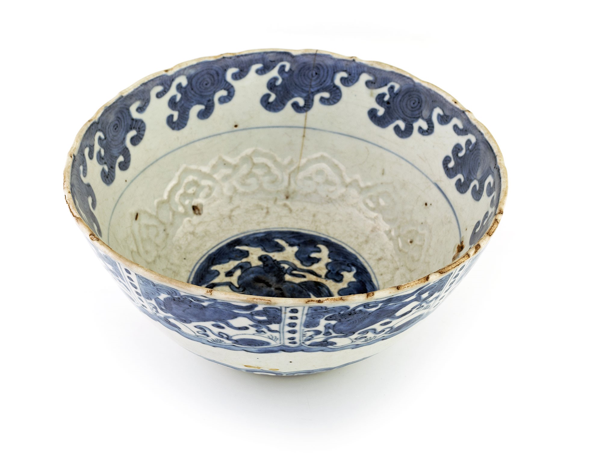 Coppetta in porcellana bianca e blu, Cina, dinastia Qing, epoca dell'Imperatore Kang Xi.