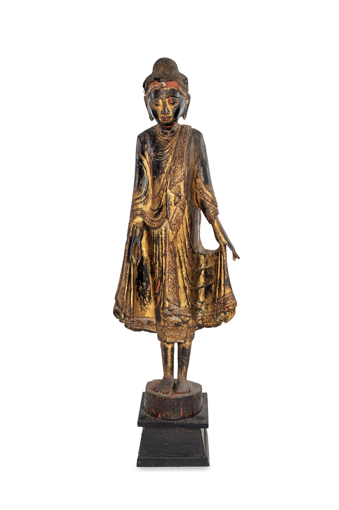 Lot 319 | Antica scultura in legno dorato raffigurante Buddha eretto