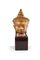 Antica testa di Buddha in bronzo, Cina base a dado nera. altezza cm 26