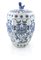 Ginger jar in porcellana, Cina con corpo esagonale decorato da peonie blu su fondo bianco; coperchio sormontato da cane di Pho. altezza cm 33