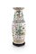 Vaso in porcellana policroma, Cina con fitta decorazione a tutto tondo con motivi beneauguranti e brevi anse plastiche stilizzate; interno monocromo verde giada. Provvisto di base in legno. altezza cm 60