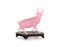 Caprone in quarzo rosa su base in legno. cm 10,5x11x3