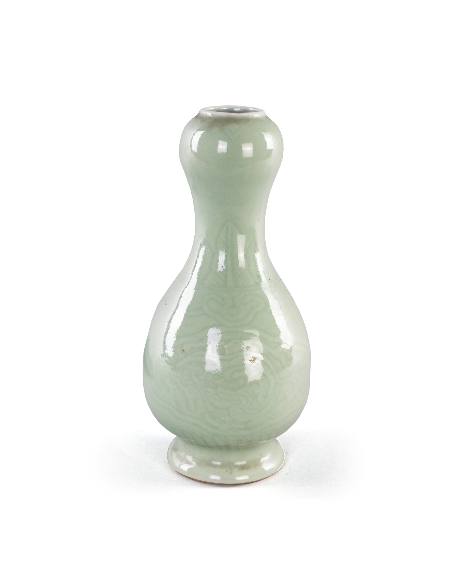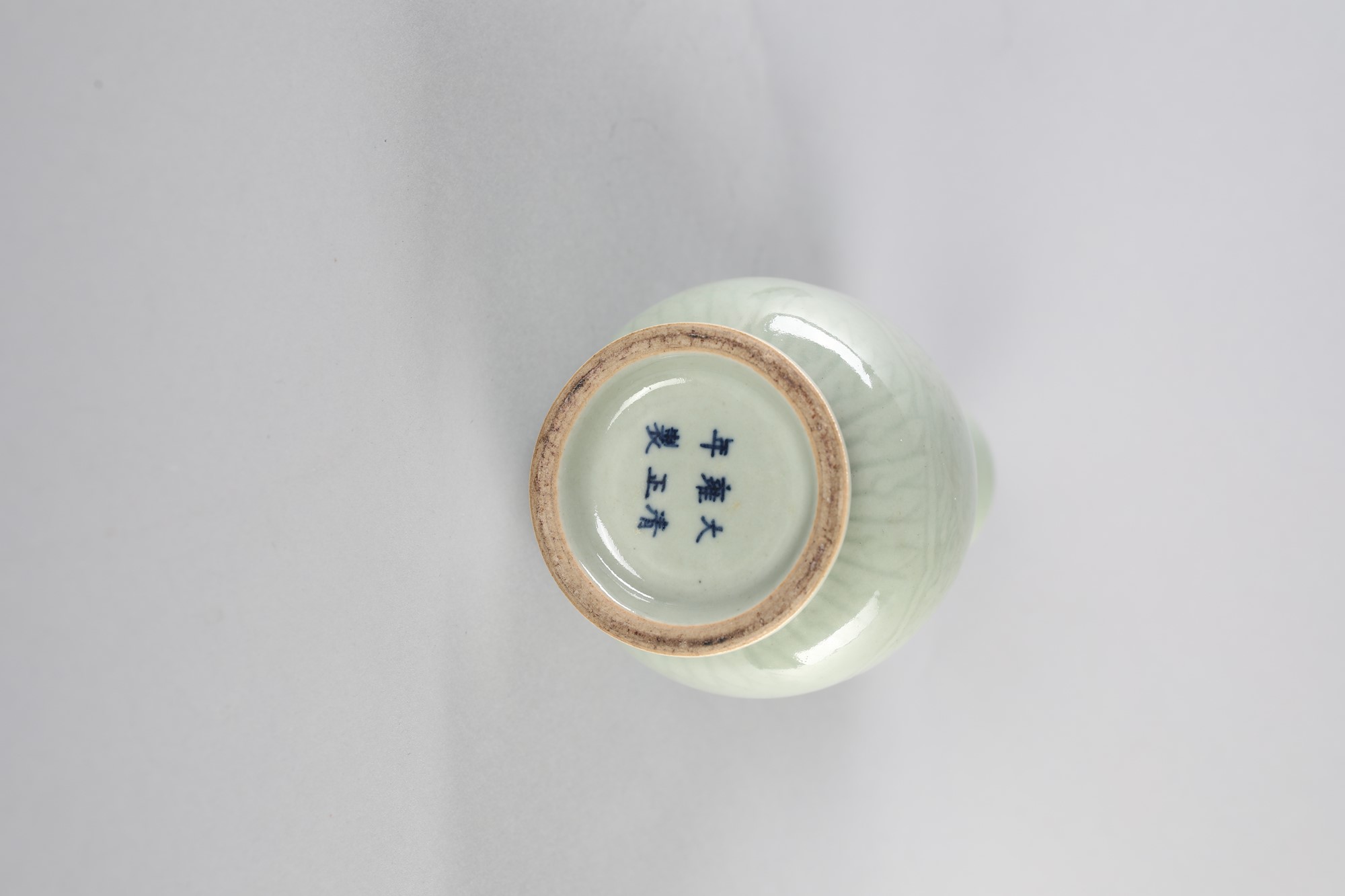 Piccolo vaso in porcellana monocroma verde giada, Cina, dinastia Qing