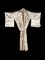 Kimono in seta avorio, Giappone con due grandi figure di pavone e tralci fioriti ricamati con fili argentati; nappe pendenti rifiniscono l'orlo delle maniche; obi in seta avorio.