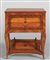 Piccolo comò trasizione Luigi XV/Luigi XVI ad inginocchiatoio lastronato in noce e intarsiato in legni vari Napoli II metà sec.XVIII