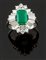Anello in platino al centro smeraldo di taglio rettangolare contornato da