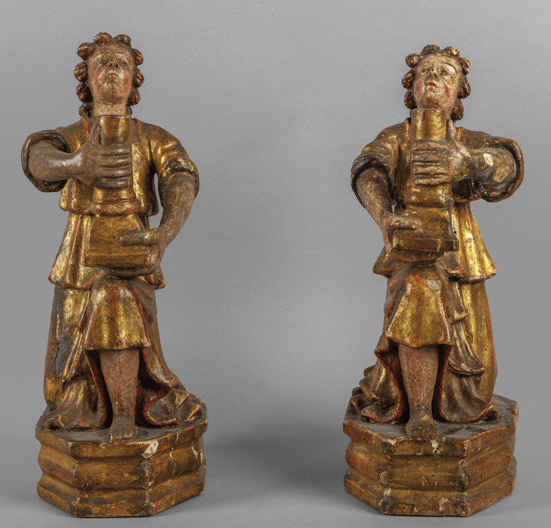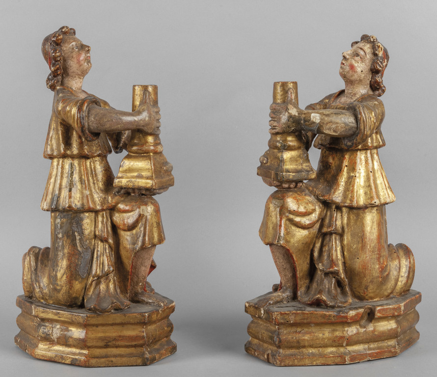 Coppia di Angioletti genuflessi portacero in legno intagliato e dorato Italia Centrale sec.XVI