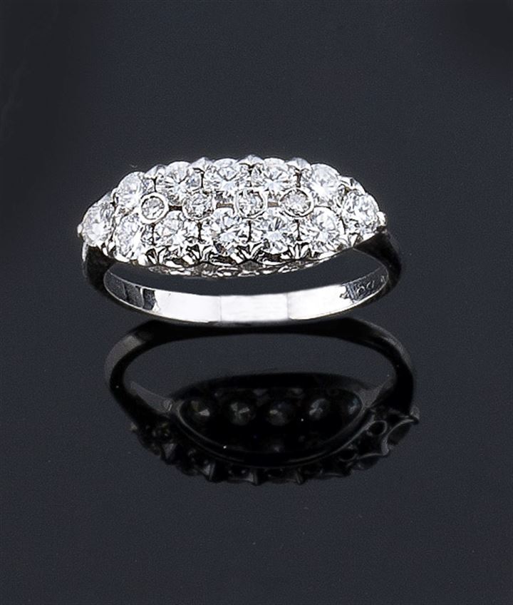 Anello in oro bianco sommità in diamanti taglio brillante e 8/8 per complessivi ct 1,0 ca