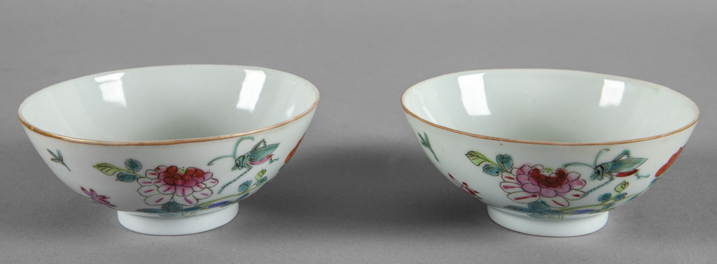 Coppia di ciotole in porcellana decorata a fiori e pesche in policromia Cina sec.XIX
