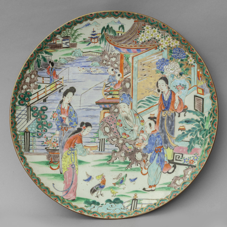 Grande piatto in porcellana decorato in policromia Giappone fine sec.XIX