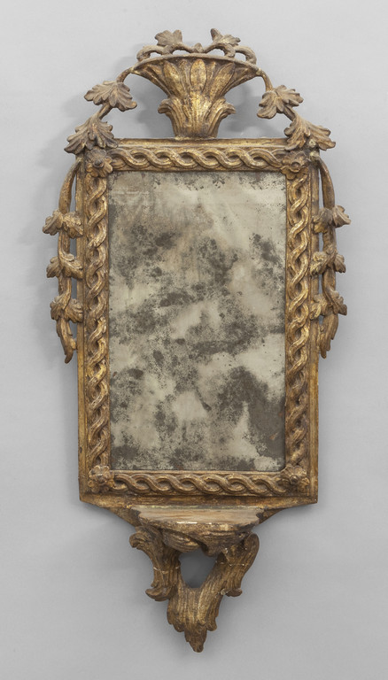Specchierina in legno intagliato e dorato con mensola inizi sec.XIX