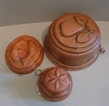 Previous Lot 0544 Next Aste Boetto - Via Mura dello Zerbino 10R, 16122 Genova ASTA DI ANTIQUARIATO, PITTURA DEL SEC.XIX E ARTE ORIENTALE Asta di Antiquariato, Pittura del sec.XIX e Arte Orientale Tuesday 29 September 2020 hours 10:30 (UTC +01:00) OGGETTISTICA Tre forme da budino in rame