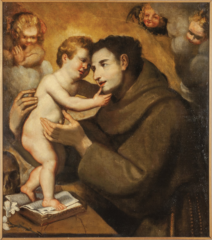 Scuola italiana sec.XVII 'Sant'Antonio con il Bambino circonadto da angioletti' olio