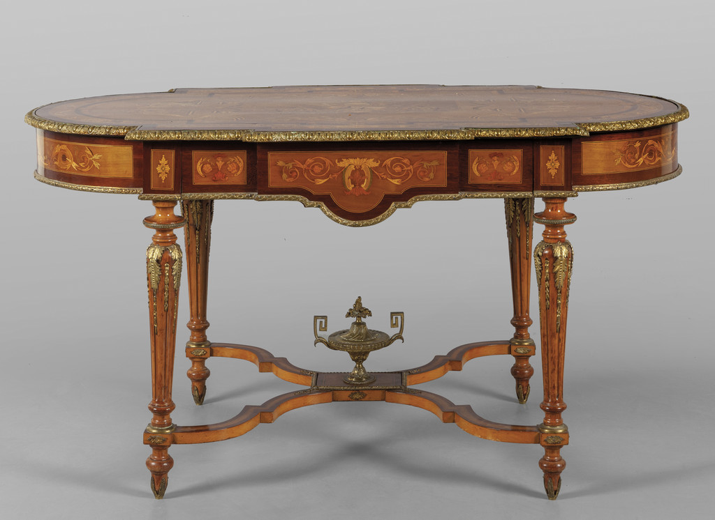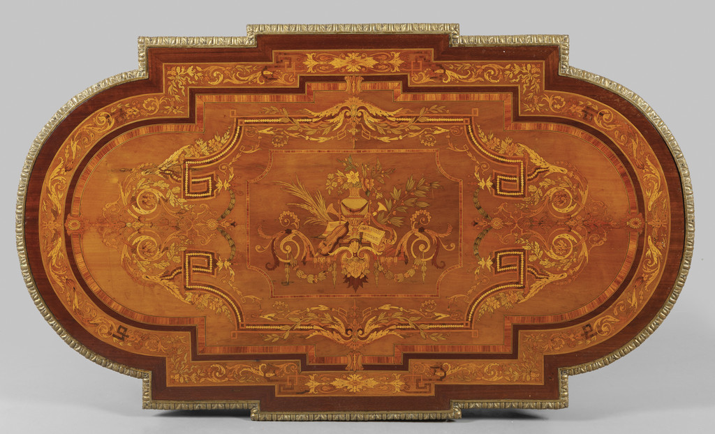 Tavolo da centro finemente intagliato con bronzi dorati Francia sec.XIX
