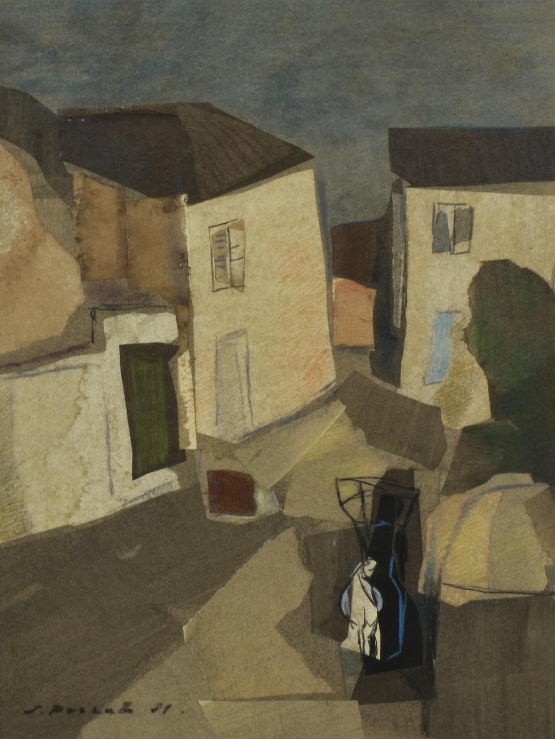 Lot 40 | Epifanio Pozzato CASE tecnica mista su carta, cm 43x33 firma e data eseguita...
