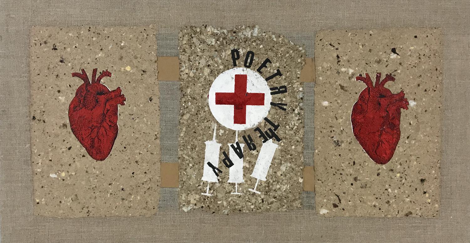 Dmitry Babenko POETRY THERAPY tempera, china, collage su carta applicata su...
