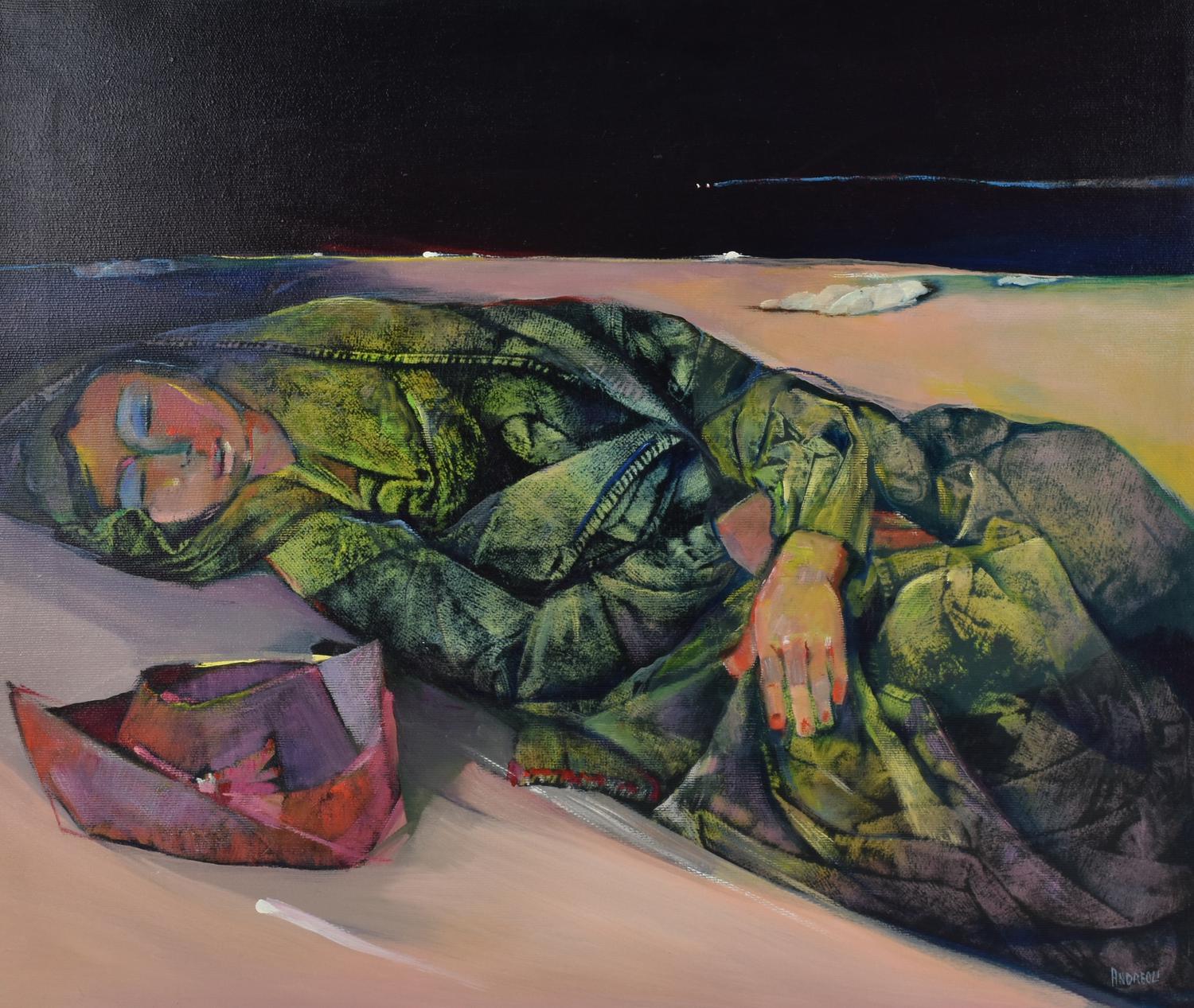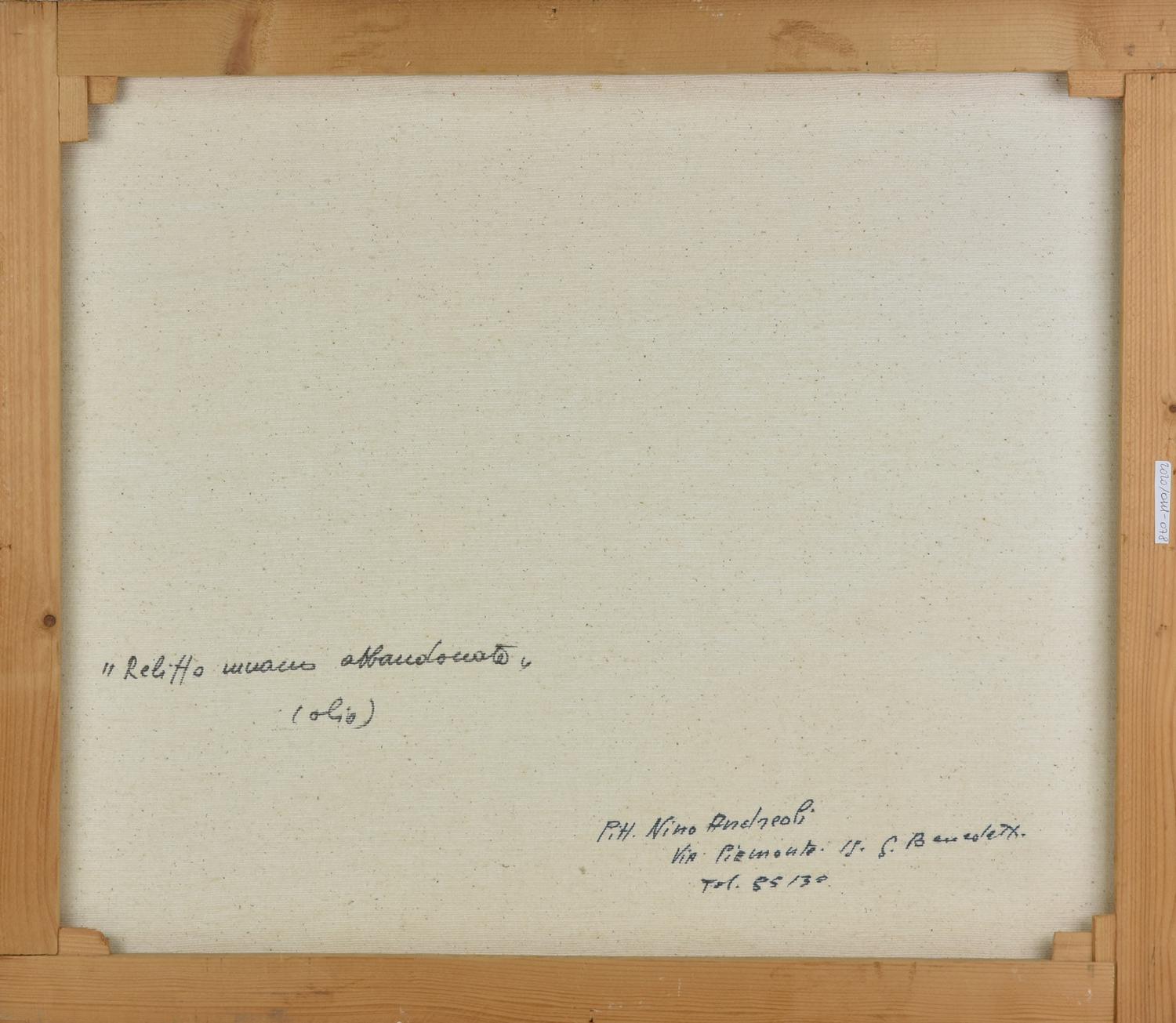 Nino Andreoli RELITTO UMANO ABBANDONATO olio su tela, cm 60x70 firma sul...