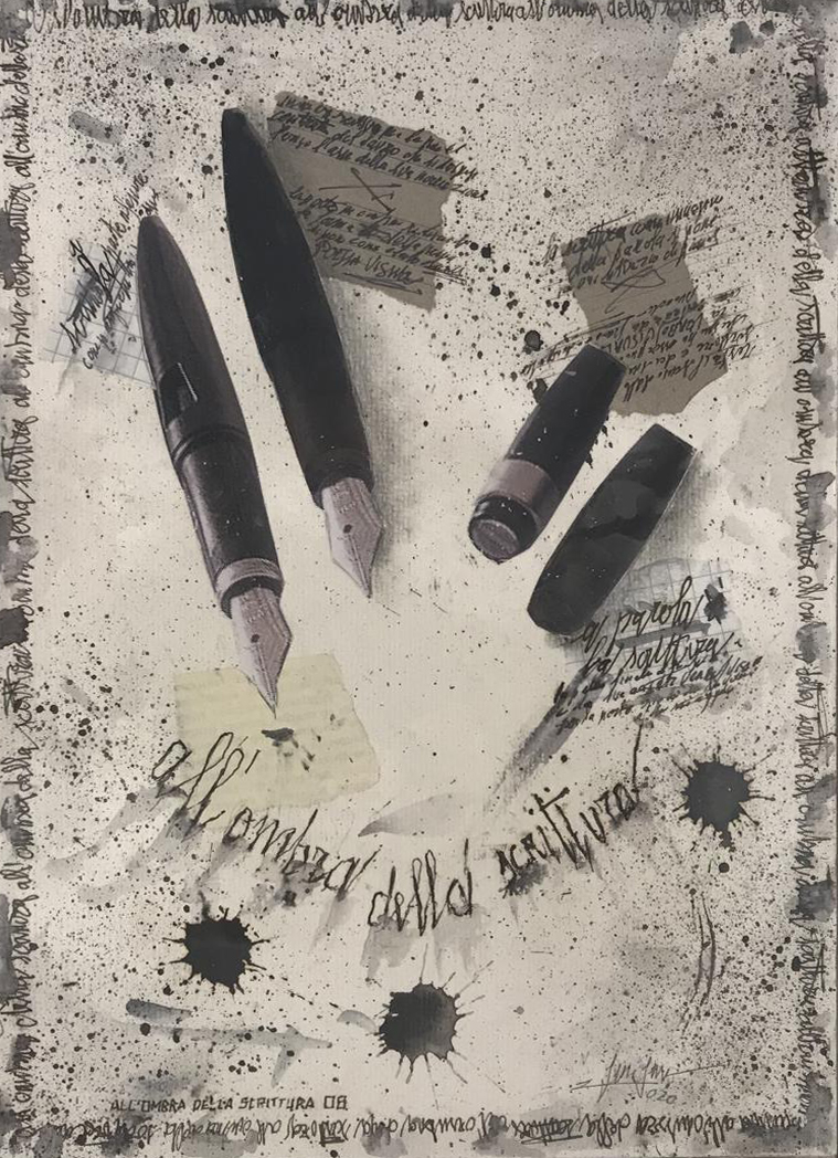 Gino Gini ALL'OMBRA DELLA SCRITTURA collage e scritture su cartoncino...