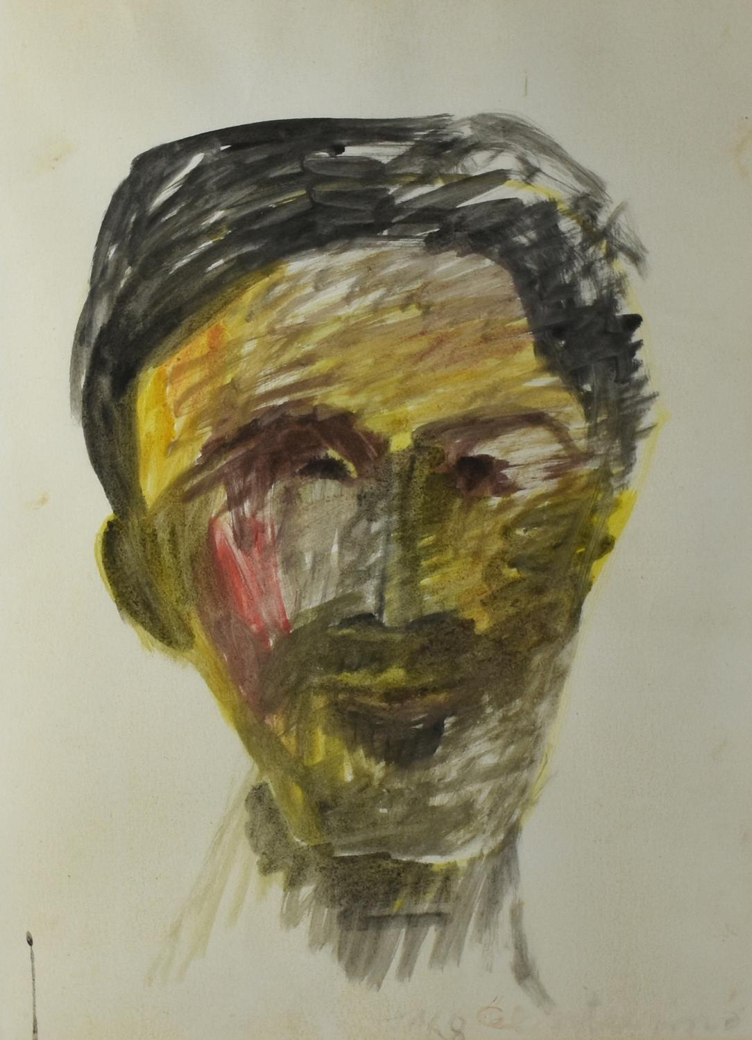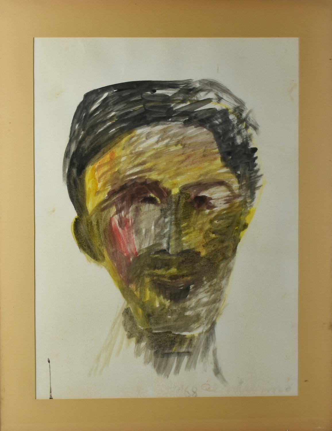 Ignoto TESTA tecnica mista su carta incollata su tavola, cm 65x50 firma e...