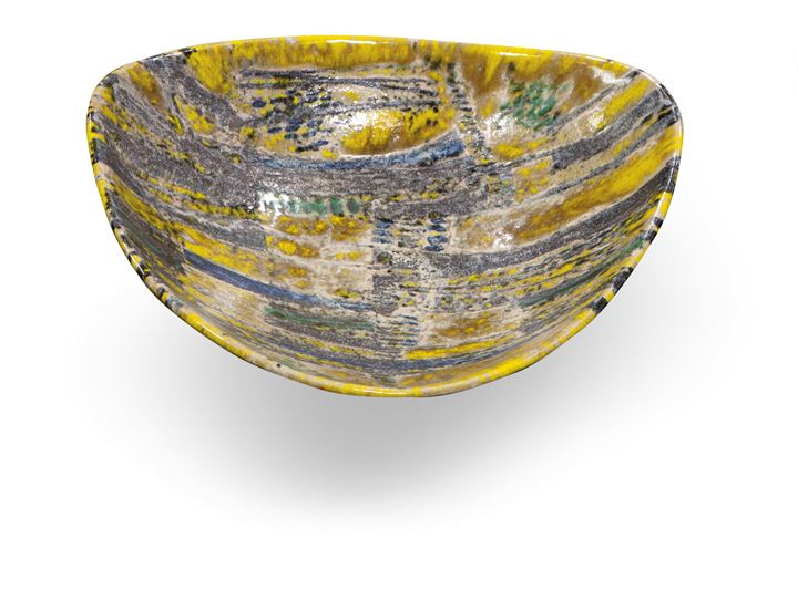ZAULI CARLO Ciotola di forma irregolare decorata a smalti policromi....