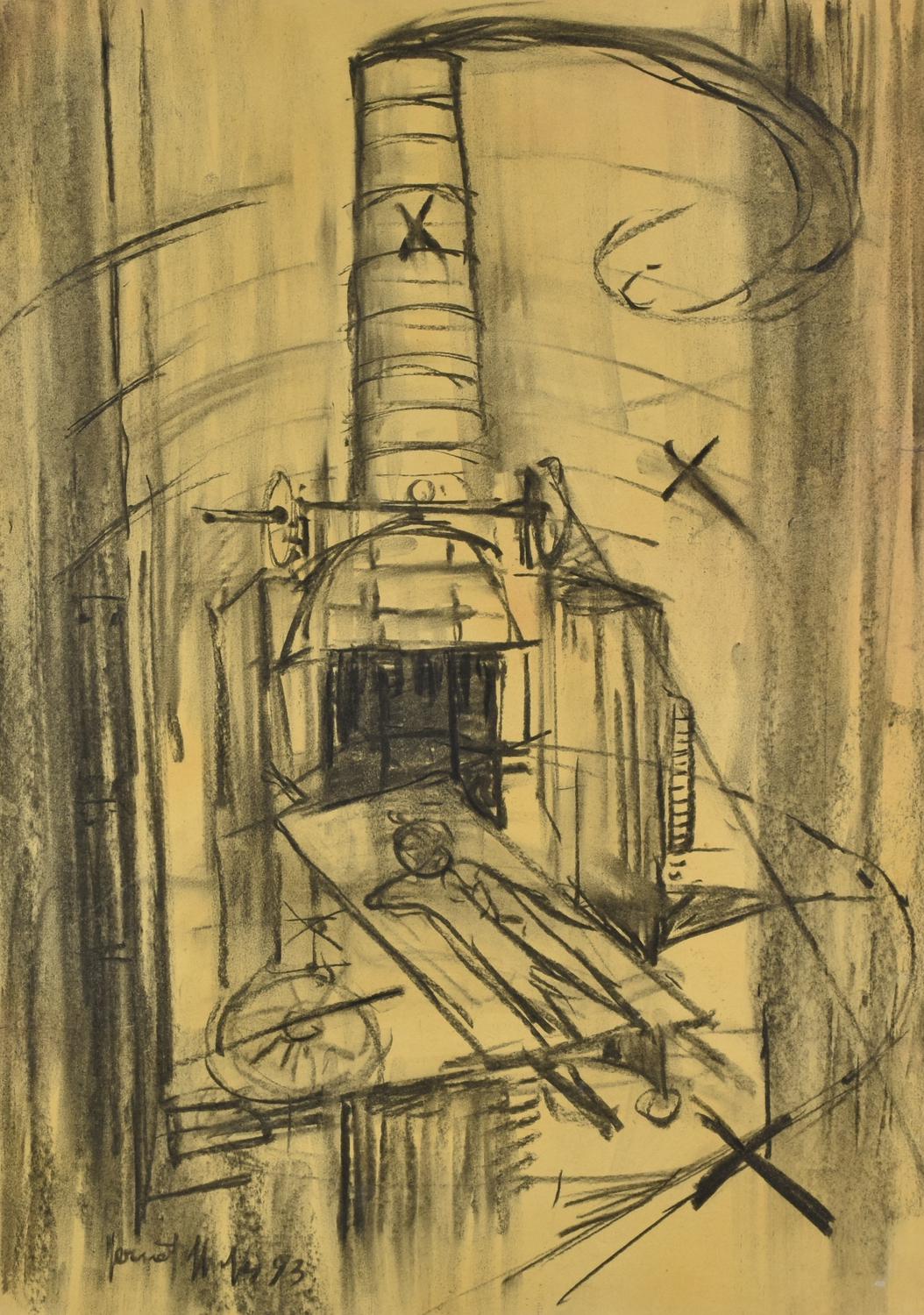 Marco Pellizzola FORNO carboncino su carta applicata su tela, cm 70x51 firma...