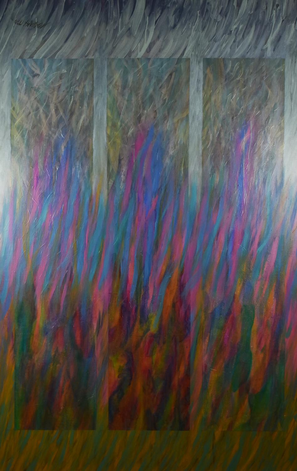 olio, collage e tecnica mista su tela, cm 210x130